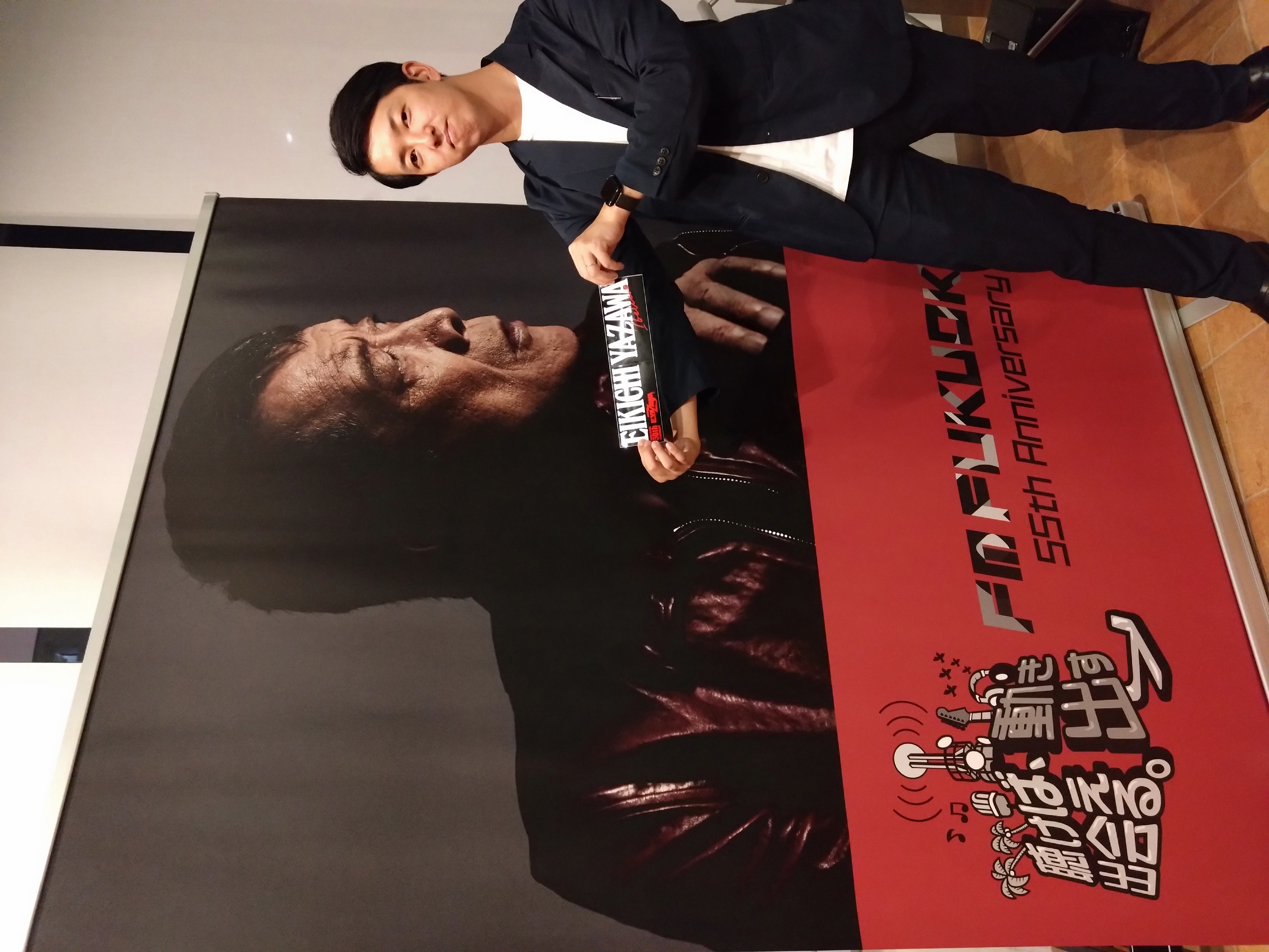 矢沢永吉さんのビッグバナーを設置中。もちろん記念撮影もOKです。