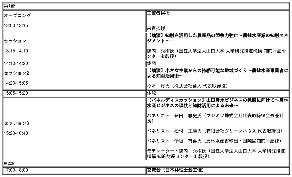 ■共催 :農林水産省、中小企業庁、(独)工業所有権情報・研修館(INPIT)、日本弁理士会、みなと山口合同新聞社