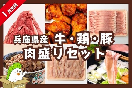 〇 【福袋】兵庫県産 牛・鶏・豚 肉盛りセット(北播磨産牛・播州百日どり・三田ポーク 計1.9kg)(JAみのり) <1月出荷>