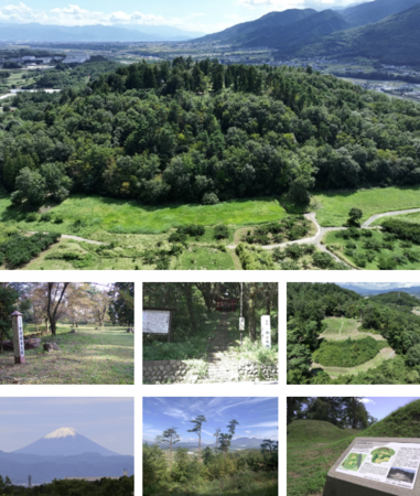 1582年、織田・徳川軍に攻められ、入城からわずか68日という短さで勝頼公自ら火を放つこととなりましたが、近年の発掘調査により、丸馬出や三日月堀ぼり、出構など、その遺構からは武田家の築城技術が随所に施されており、戦国武田家の集大成の城をいまに伝える良好な城跡です。