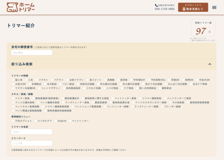より安心して依頼いただけるよう、トリマーごとの特徴・スキル・資格・対応経験を細かく検索できる機能を追加しました。