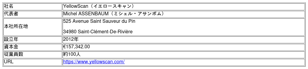 ※イエロースキャンジャパンはYellowScan社が設立した日本法人です。