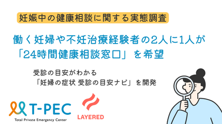 ティーペック株式会社(本社:東京都台東区、代表取締役社長兼CEO:鼠家 和彦)は、妊娠中の健康相談に関する実態調査を実施し、その結果を公開しました。また、本調査の結果を踏まえ、株式会社レイヤード(本社:福岡市博多区、代表取締役社長:毛塚 牧人)と共同で妊婦向けオンライン支援サービス「妊婦の症状 受診の目安ナビ」を開発し、2026年1月にリリースいたしました。