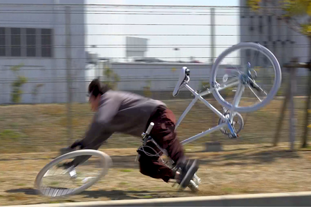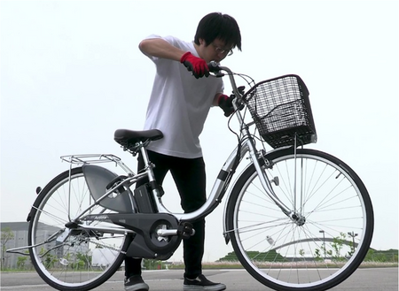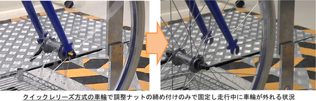 画像5「P4クイックレリーズ方式の車輪で調整ナットの締め付けのみで固定し走行中に車輪が外れる状況」