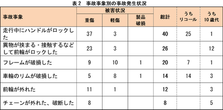 また、2026 年 3 月に NITE が実施した自転車の事故・ヒヤリハットの経験に関するアンケート調査では、「車輪への異物の巻き込みの事故」の他、「ブレーキの効きが悪く、ぶつかりそうになった」といった事例が多く見られました。