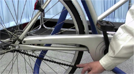 車輪やハンドルまわり、ペダルの緩みやがたつきを確認する