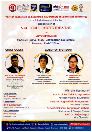 2026年3月23日~26日、AICTE IDEA LAB(アイデアル・ディベロップメント評価・応用研究所)の開所式に招へいされ、集中講義を実施しました。