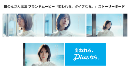 ブランドムービー『変われる、ダイブなら。』では、主人公を演じるのんさんが、ローカル電車に揺られながら、過去と向き合い、人生の転機となった”あの日”を思い返す姿を描いています。