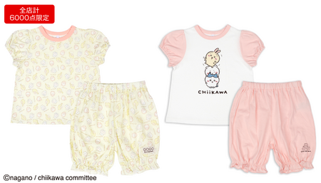 今回販売する「アニメちいかわ」シリーズは、ロンパースやスタイといったベビーアイテムから、Tシャツ、パジャマ、通園・おでかけにも使いやすいアイテムまで幅広くラインナップ。毎日の生活で使用しやすい商品を取り揃えました。