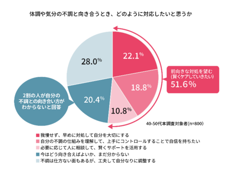 ● 51.6%の女性は「体調や気分の不調に前向きに対処したい」と回答