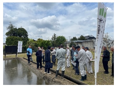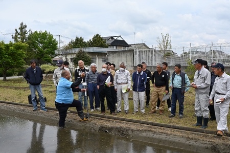 <地元農業者への水位センサー説明会の様子>