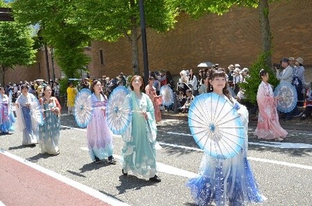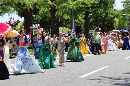 各国の華やかな民族衣装を披露する「国際交流パレード」を実施