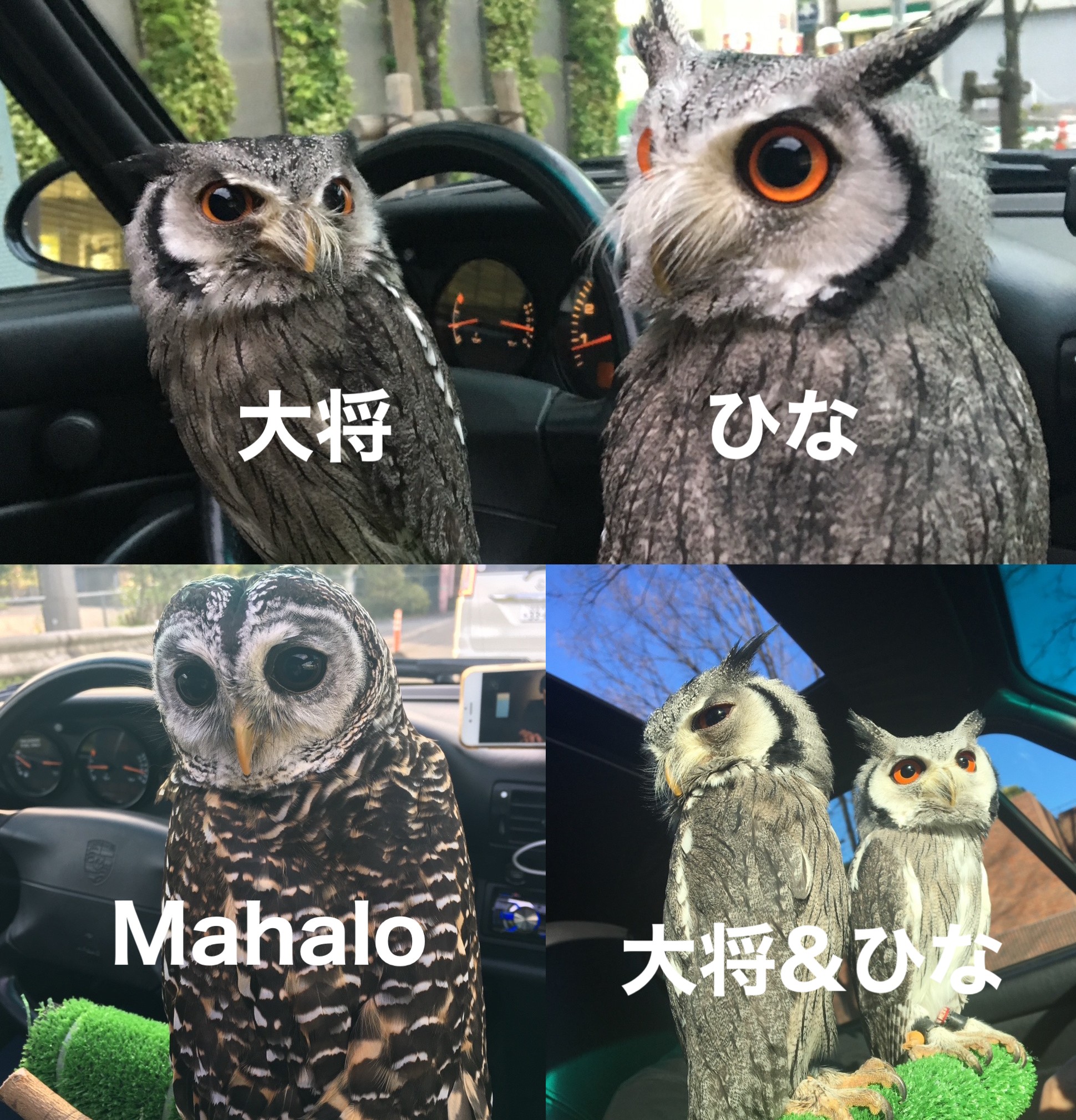 我家のペット、アフリカオオハコノズク(通称アフコ)の大将とひな。
