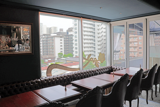 ビル最上階なので、夜景を眺められる開放的な空間になっています。