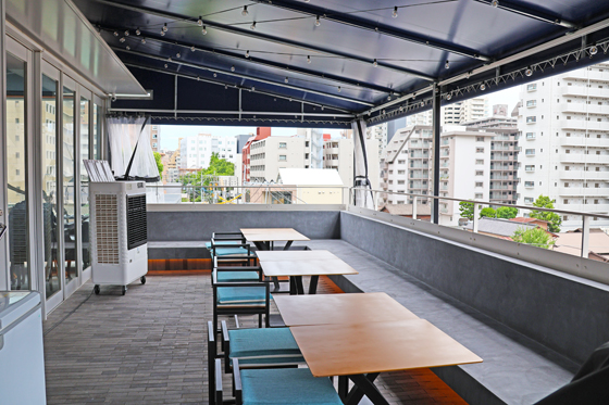 テラス席では、ルーフトップBBQスタイルの浜焼きを楽しめます。