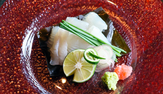 透明醤油は塩味が効き、繊細な白身の淡い旨味にとても合います。