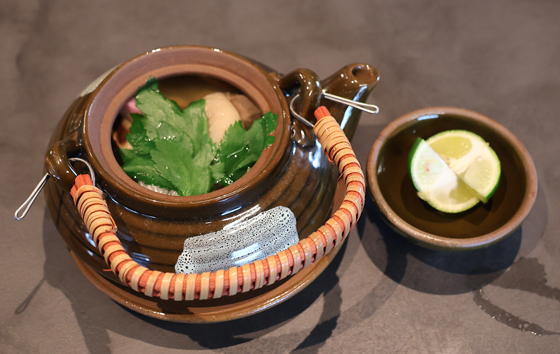 まずは、出汁を頂くと、昆布と鰹の旨味に松茸の香りが加わり、口いっぱいに秋の風味を感じます。