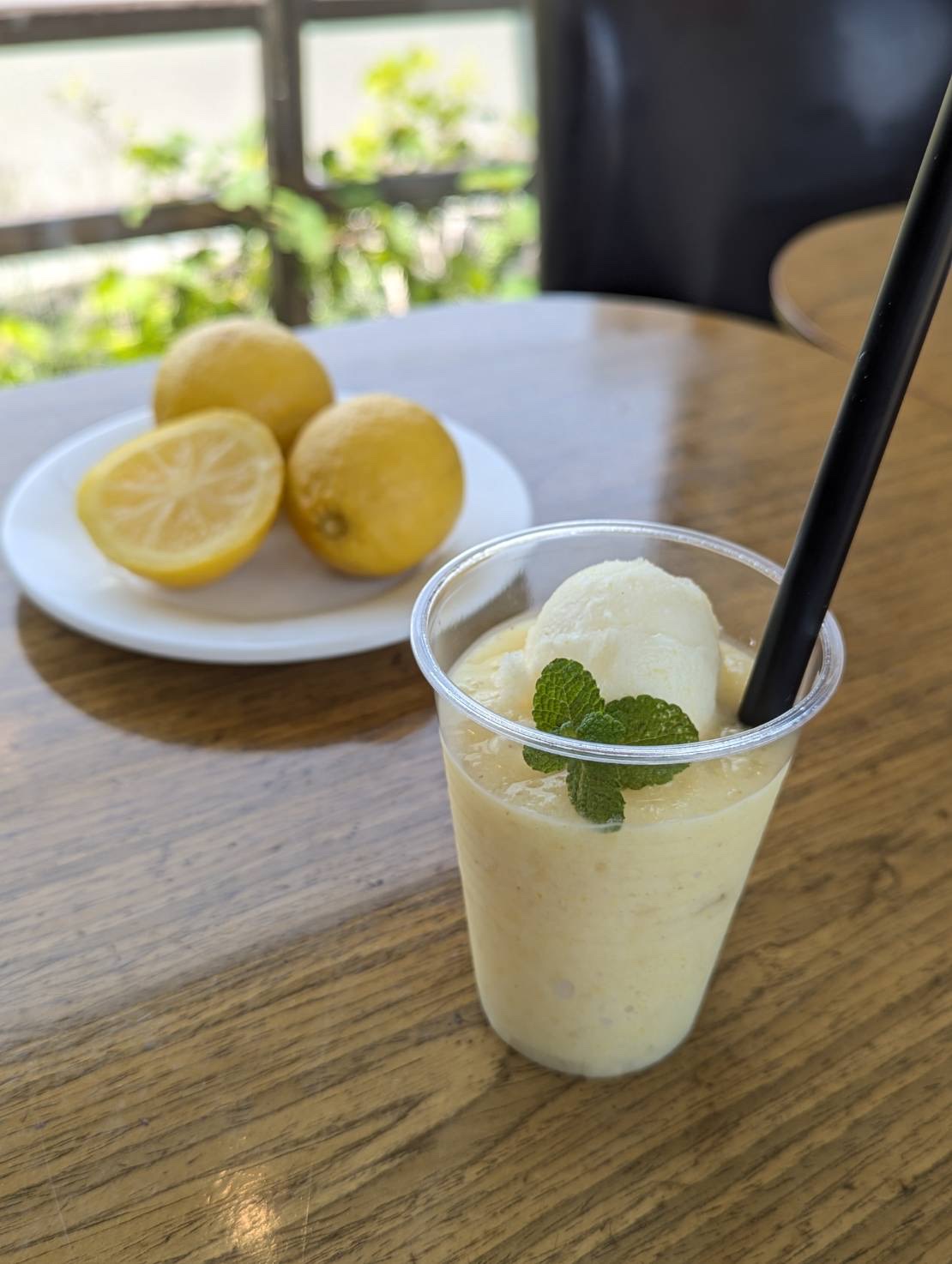 ※上毛レモンを丸ごとクラッシュしたレモンスムージー、シャリシャリした食感と