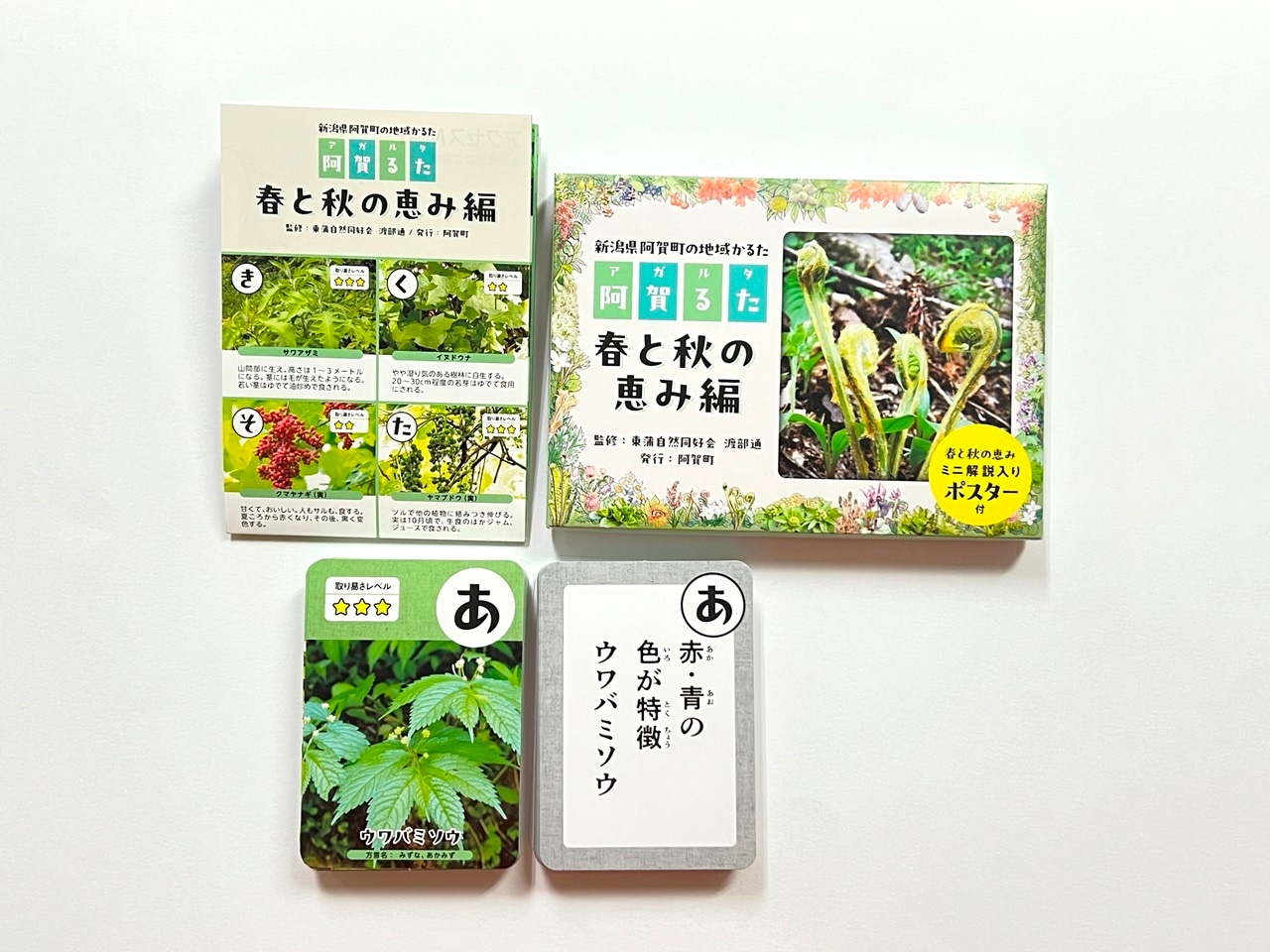阿賀町の山の恵みを紹介する地域かるた、山菜編ときのこ編がある