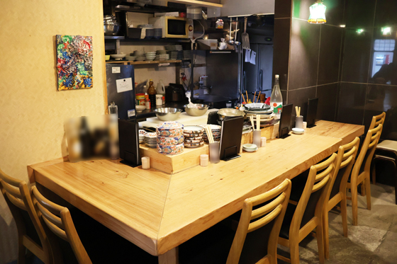 店内は入口付近にカウンター席、そして、ほりごたつ式の席があります。