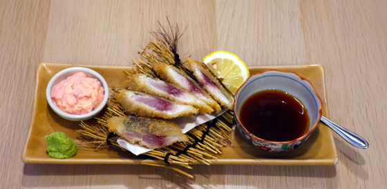 外側を香ばしく焼き、中はレアで仕上げ、酒肴にぴったりです。