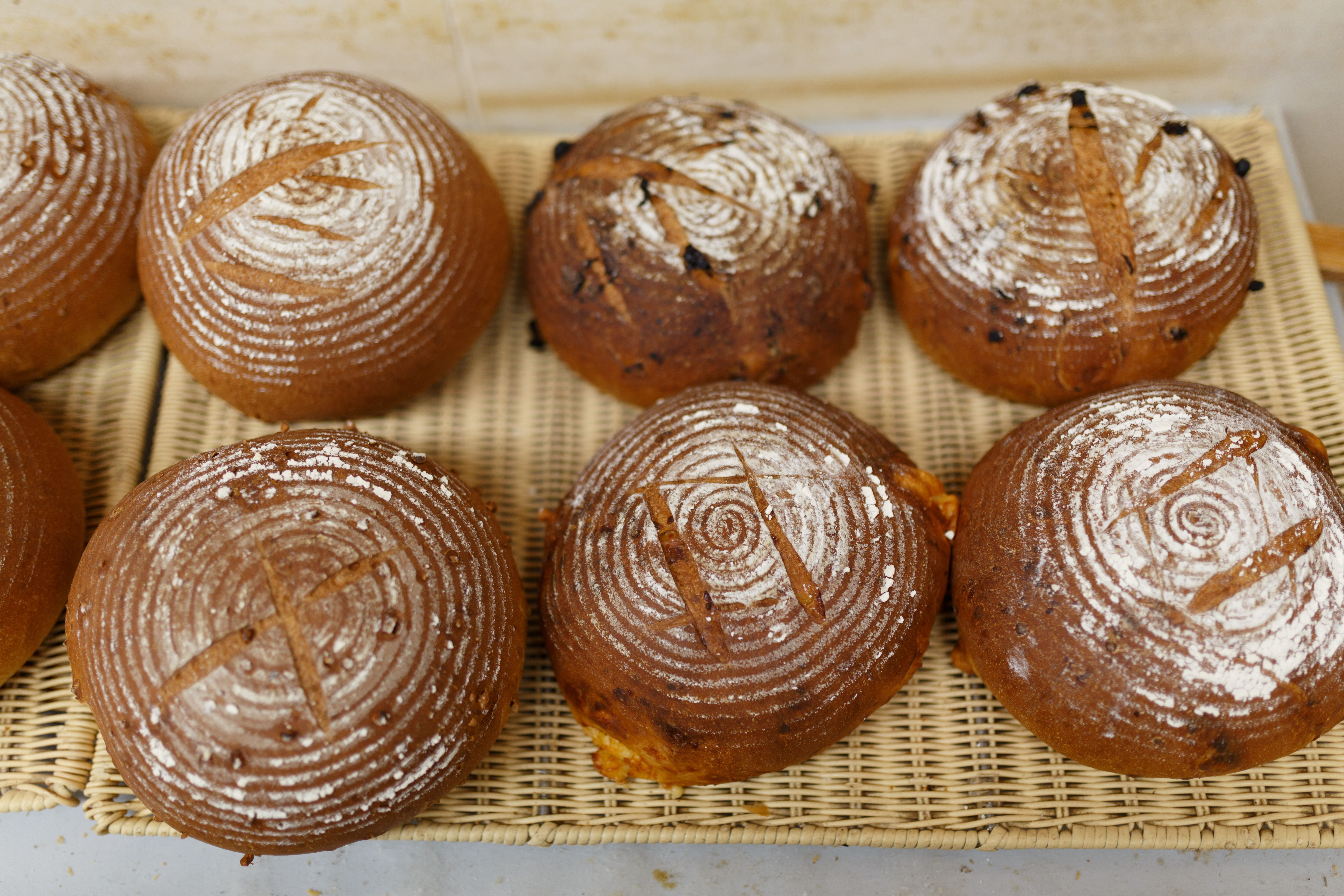 ※筑前町産の米を使った米粉パン、大人の顔が隠れるくらいの大きさ。