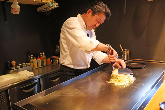 その後、様々な場所で鉄板焼、お好み焼き店を立ち上げ、以前、別コーナーで取材したお店も手掛けていました。今回、中でも気に入った福岡に舞い戻り、この店をオープンしたということです。
