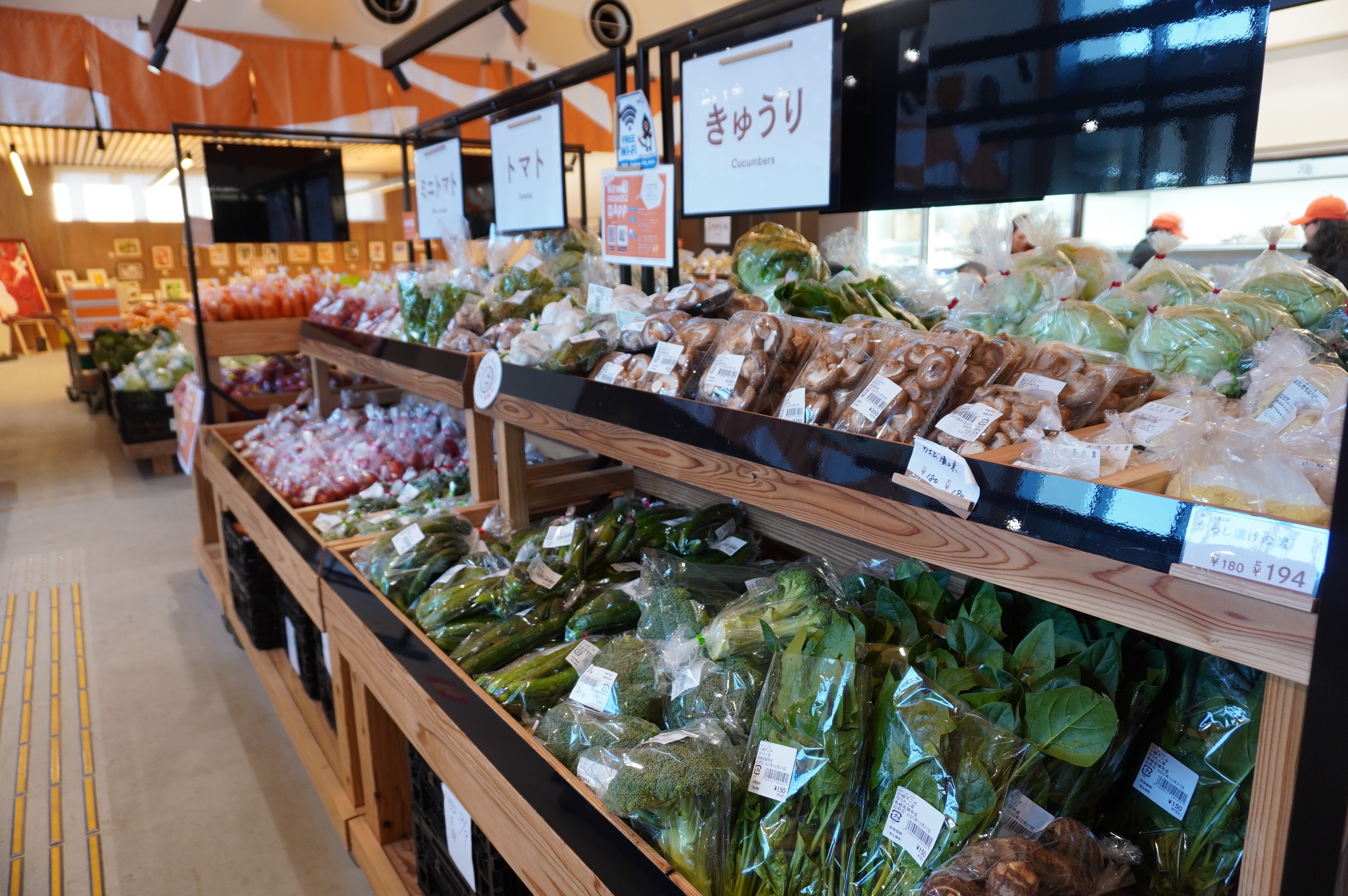 道の駅内の直売所には、諫早産のじゃがいもやにんじんをはじめとする、新鮮な農林水産物や加工品が並んでいます。