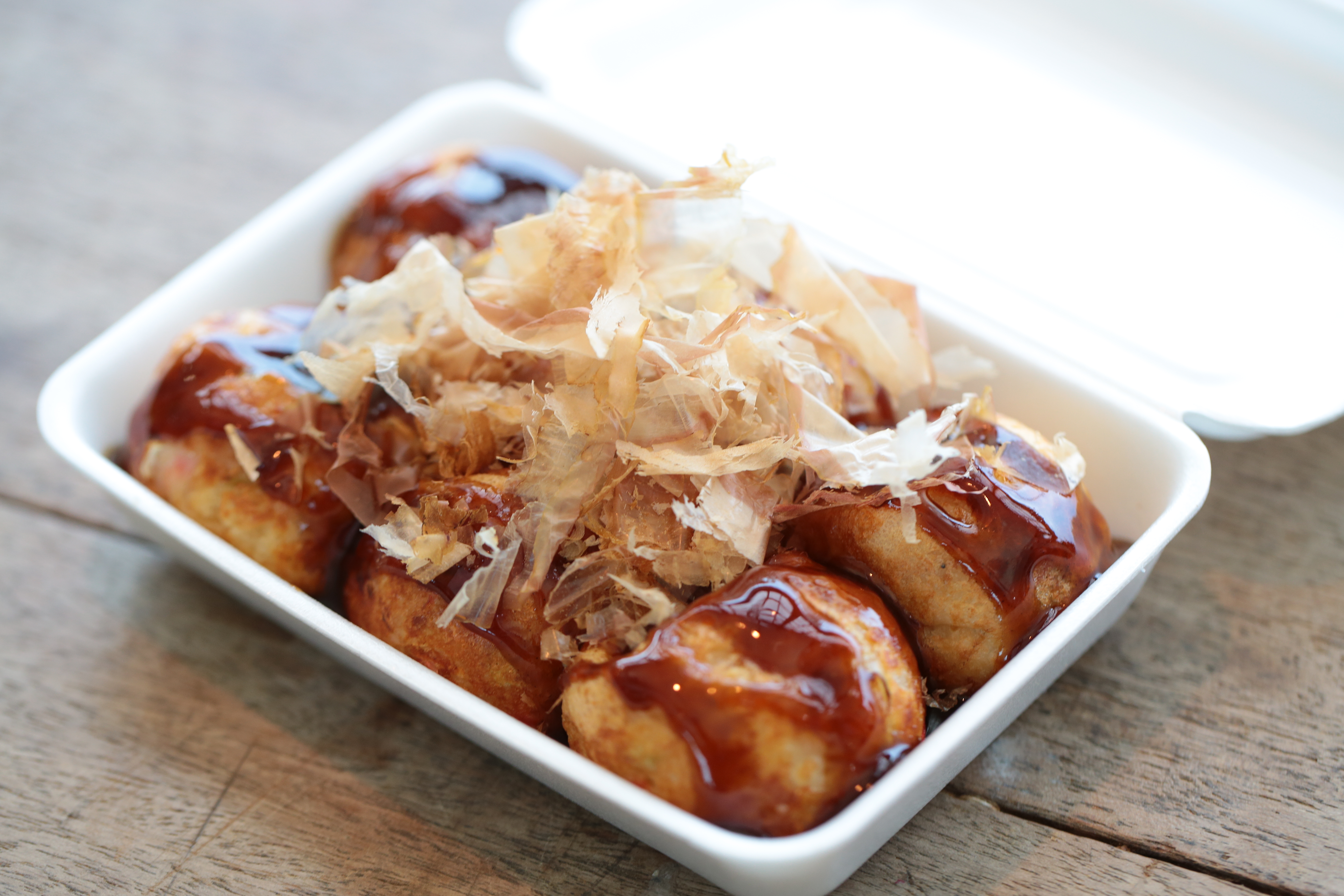 ※海の幸、たこ・えび・ほたてがたっぷり入ったたこ焼き。