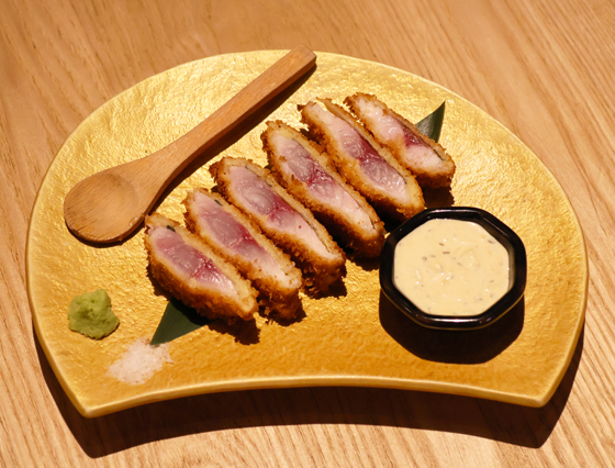 自家製スパイシータルタル、山葵、塩が出てくるので、お好みで。