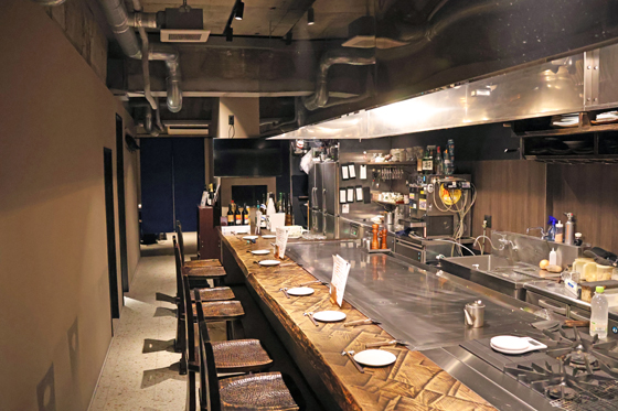 店内は、大きな鉄板があるライブ感を楽しめるカウンター席とテーブル席があります。