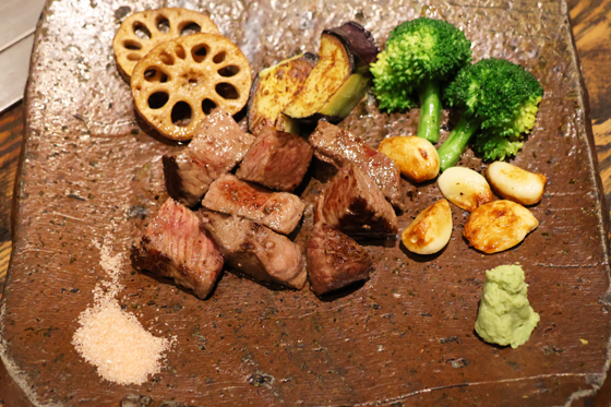 鉄板を使った旬の野菜やステーキ、広島お好み焼きや、旬魚の刺身などをカジュアルに食べられるお店です。