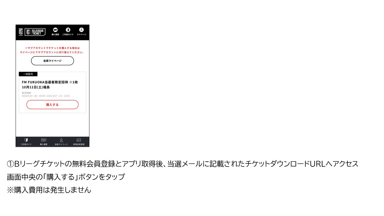 ※チケット取得には、Bリーグチケットの無料会員登録とアプリ取得が必要となります。